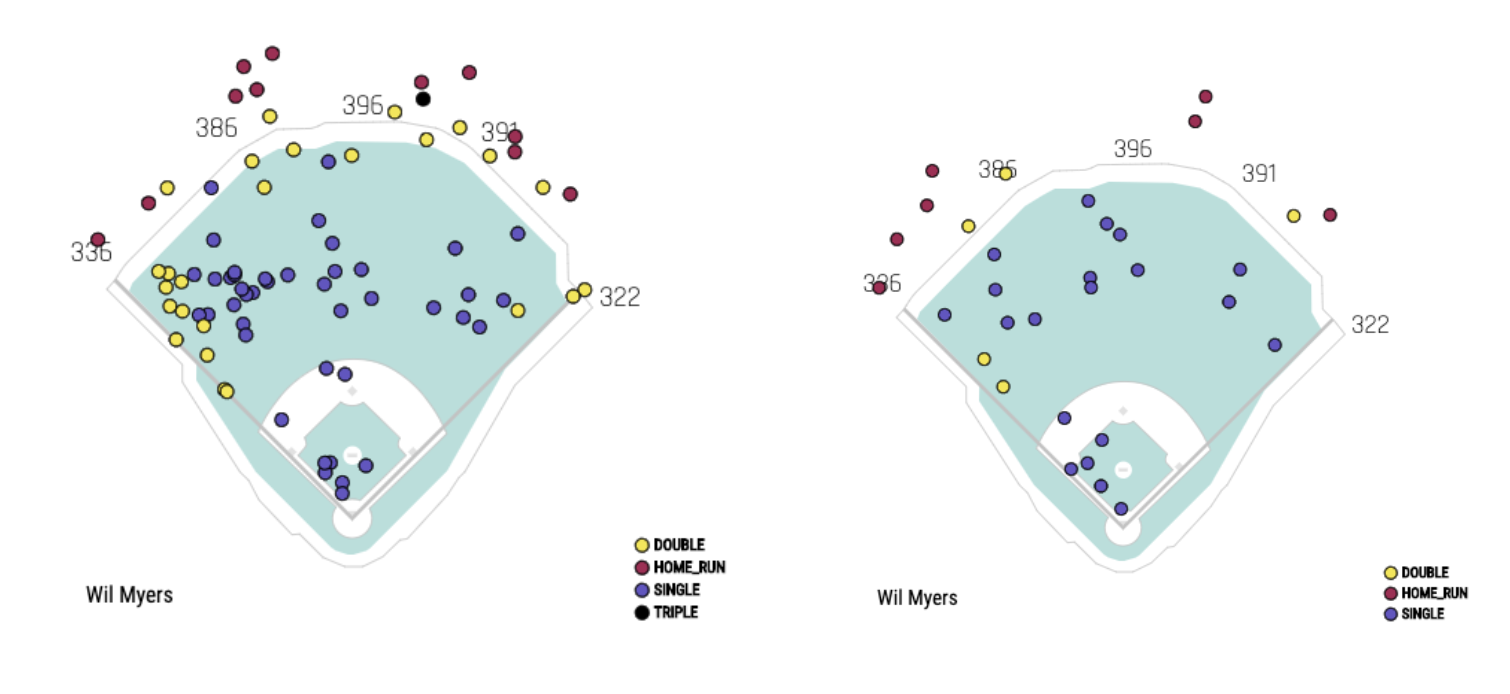 Well at least he can hit pitches thrown over the heart of the plate, which is somewhat encouraging for a change. Yet his low number of hits in the locations where he’s whiffed so often is quite disappointing and illustrates why the 36-year old has struggled so much. When the Padres signed Ian Kinsler, this is certainly not what they had in mind. Controversies aside, he’s been an objectively below average major league player this season. The data and charts above are enough on their own to justify letting the second baseman go. It’s now a question of how long the Padres are willing to wait for a 36 year-old veteran to learn to hit fastballs.